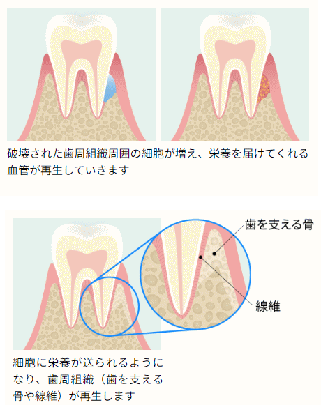 歯周組織再生療法は、その名のとおり歯を支えている歯周組織を再生する治療法です。